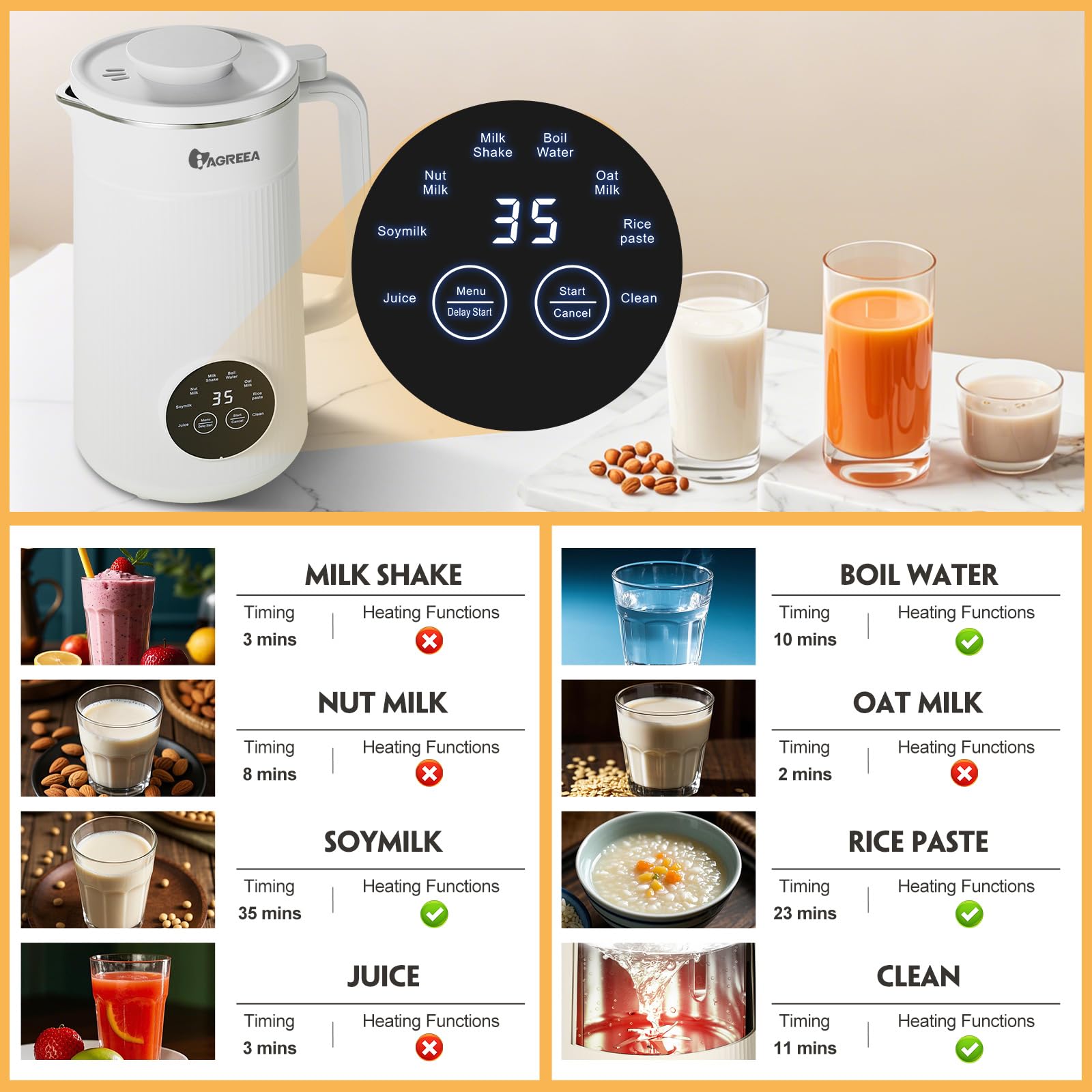 Detalles: ¿Cansado de comprar leche de nueces prefabricada y no saber qué hay en ellos? Con la máquina de leche de nueces IAGREEA ahora puedes tomar el control de tu nutrición. Esta increíble máquina de leche vegana de 35 onzas tiene varias funciones que te permiten hacer leche de almendras, leche de soja, cualquier otra leche de nueces, pasta (comida para bebés), jugo y batido, todo con una sola máquina. Además de una increíble función de limpieza que se limpia sola. A diferencia de las marcas compradas en la tienda que pueden contener conservantes y aditivos poco saludables, ahora tienes un control completo sobre los ingredientes que entran en tus bebidas mientras tienes grandes lotes listos a la vez con solo pulsar un botón. No solo es muy conveniente, sino divertido experimentar haciendo diferentes sabores para cada ocasión, perfecto para una noche cálida y acogedora en o reuniones con amigos y familiares